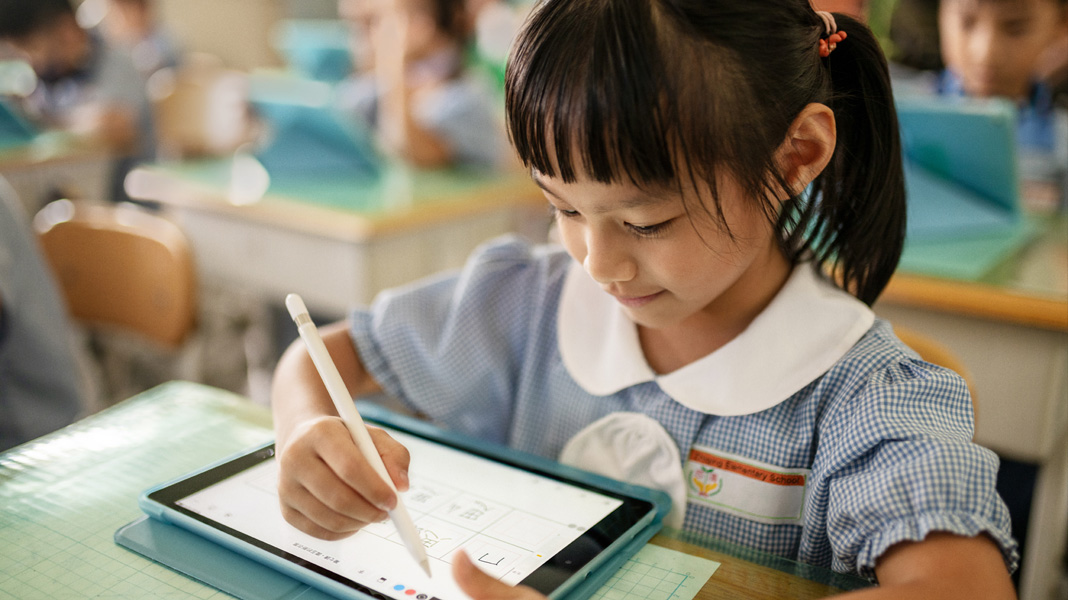 Perto do distrito comercial de Taipei, está a Zhiqing Municipal Elementary, uma escola pública que atende mais de 700 estudantes do jardim de infância ao sexto ano. Seu diretor, Juiting Chang, acredita que a tecnologia contribui para o desenvolvimento de habilidades de pensamento crítico e criatividade na sala de aula e que aprender com o iPad pode ajudar as crianças a competir em um cenário global.