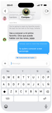 Activa Traducción en Vivo para traducir textos automáticamente en Mensajes1, leer subtítulos generados en vivo mientras usas FaceTime y escuchar traducciones habladas durante una llamada en la app Teléfono.2