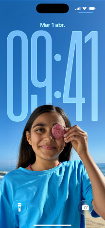 La hora se adapta a tu foto de fondo y a las notificaciones, manteniendo siempre el enfoque en el sujeto. Al mover tu iPhone, la foto cobra vida gracias a un nuevo efecto 3D.5