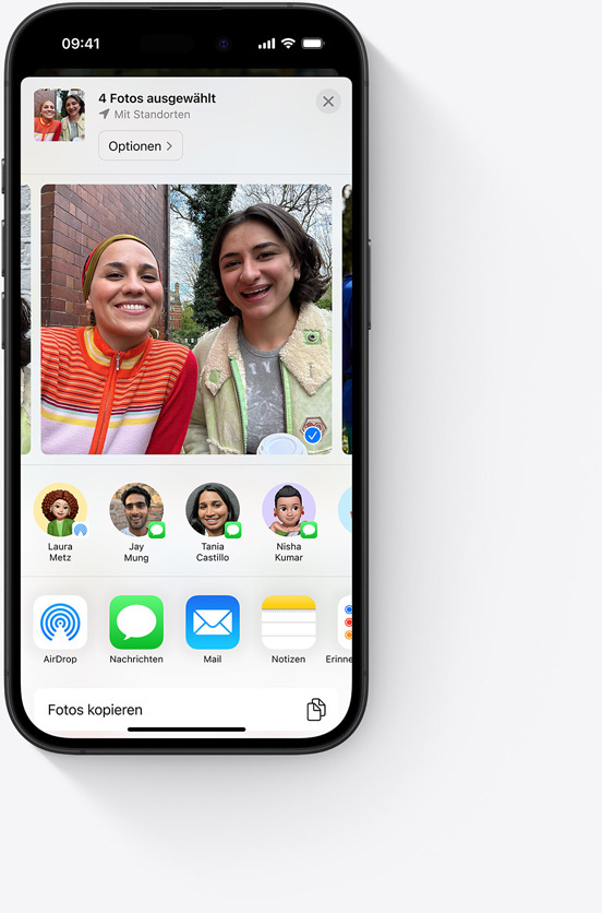 Mit der geteilten Foto­mediathek kannst du ausgewählte Fotos und Videos ganz einfach und nahtlos mit bis zu fünf anderen Personen teilen. Die Inhalte aus deiner geteilten Foto­mediathek erscheinen in Empfohlene Fotos und in Rück­blicke, damit du deine Erlebnisse noch einmal erleben kannst – mit von allen aufgenommenen Fotos.
