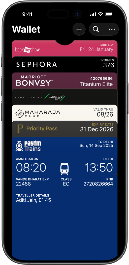 The Wallet app lives right on your iPhone. It’s where you securely keep your boarding passes, event tickets and more — all in one place. And it all works with iPhone or Apple Watch, so you can take less with you but always bring more.