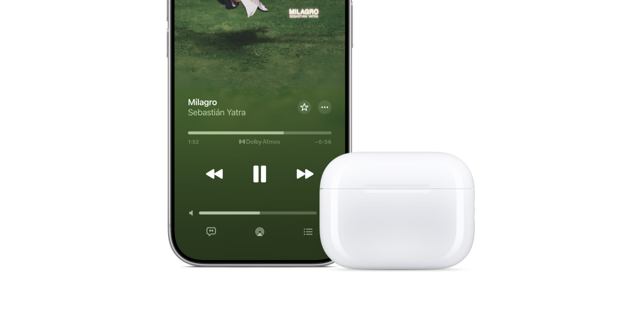 sólo tienes que ubicarlos junto a tu iPhone y seguir las instrucciones en pantalla. Usa Cambio Automático para que tus AirPods se conecten de inmediato a cualquier dispositivo en el que quieras escuchar. Sólo tienes que presionar reproducir.18