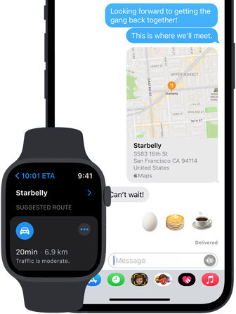 Enjoy a smooth, uninterrupted experience across all the Apple devices you use to get around. Haptic Feedback on Apple Watch nudges you in the right direction so you don’t have to get out your iPhone when you’re on foot. Calendar alerts on your Mac let you know when it’s time to stop working and go. And Maps also syncs automatically with Spotlight, Messages and Weather to give you relevant information at all the right moments.