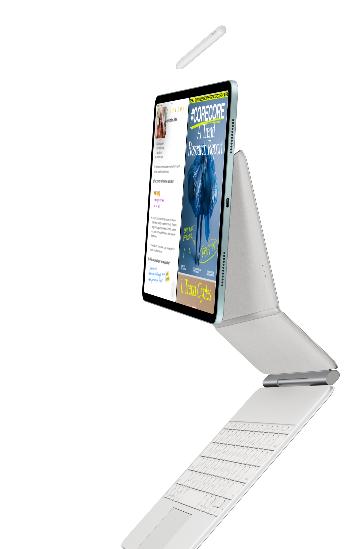 iPad Air attached to Magic Keyboard for iPad Air and Apple Pencil Pro