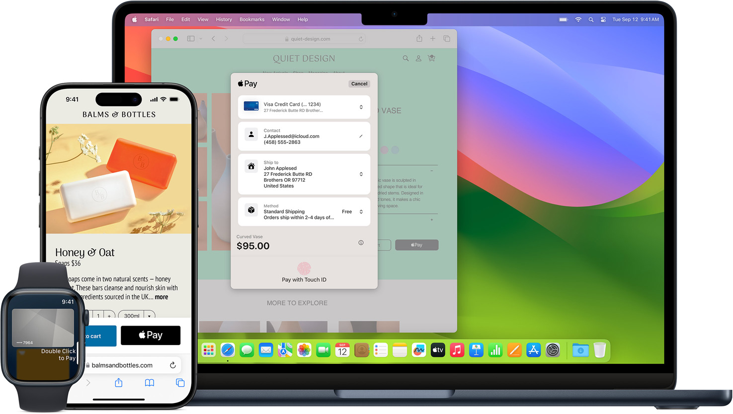 Gdy płacisz w sklepie, ani serwer Apple, ani Twoje urządzenie nie przekazuje rzeczywistego numeru Twojej karty sprzedawcy. Gdy płacisz online w Safari lub apce, sprzedawca otrzyma tylko informacje, które zgodzisz się udostępnić w związku z realizacją zamówienia, takie jak imię i nazwisko, adres e-mail i adres rozliczeniowy oraz adres dostawy.