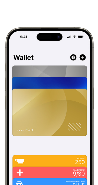 • Apple Wallet is an app on iPhone and Apple Watch that securely and conveniently organizes your credit and debit cards, transit passes, boarding passes, tickets, rewards cards, and more — all in one place.