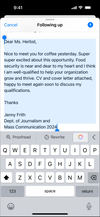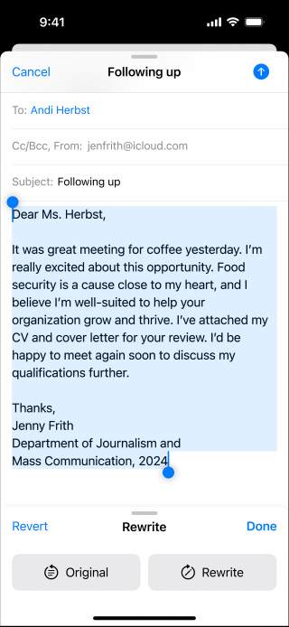 Apple Intelligence protects your privacy at every step. With on-device processing and Private Cloud Compute, no one but you can access your data — not even Apple.