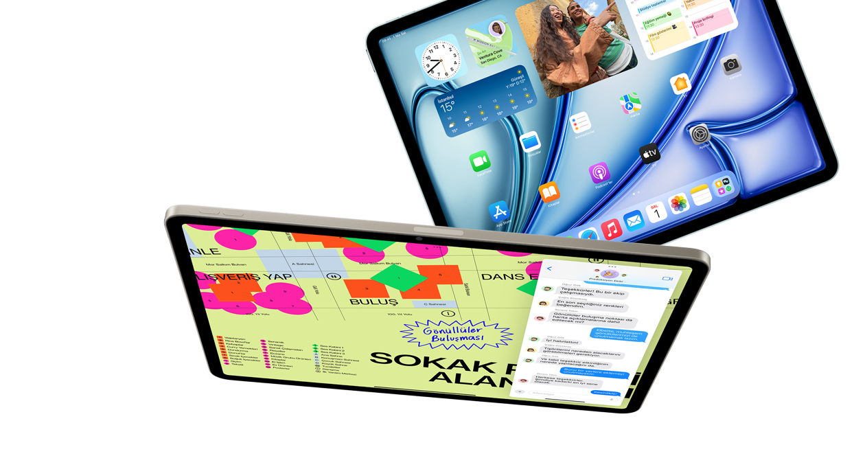 İster 11 inç isterseniz 13 inç iPad Air modellerinden birini seçin. Her ikisinin de sahip olduğu göz alıcı, yüksek çözünürlüklü Liquid Retina ekran, yapmayı sevdiğiniz her şeye hayat katıyor. İki ekran da göz dolduran, akıcı ve renk hassasiyeti sağlayan bir izleme deneyimi sunuyor.