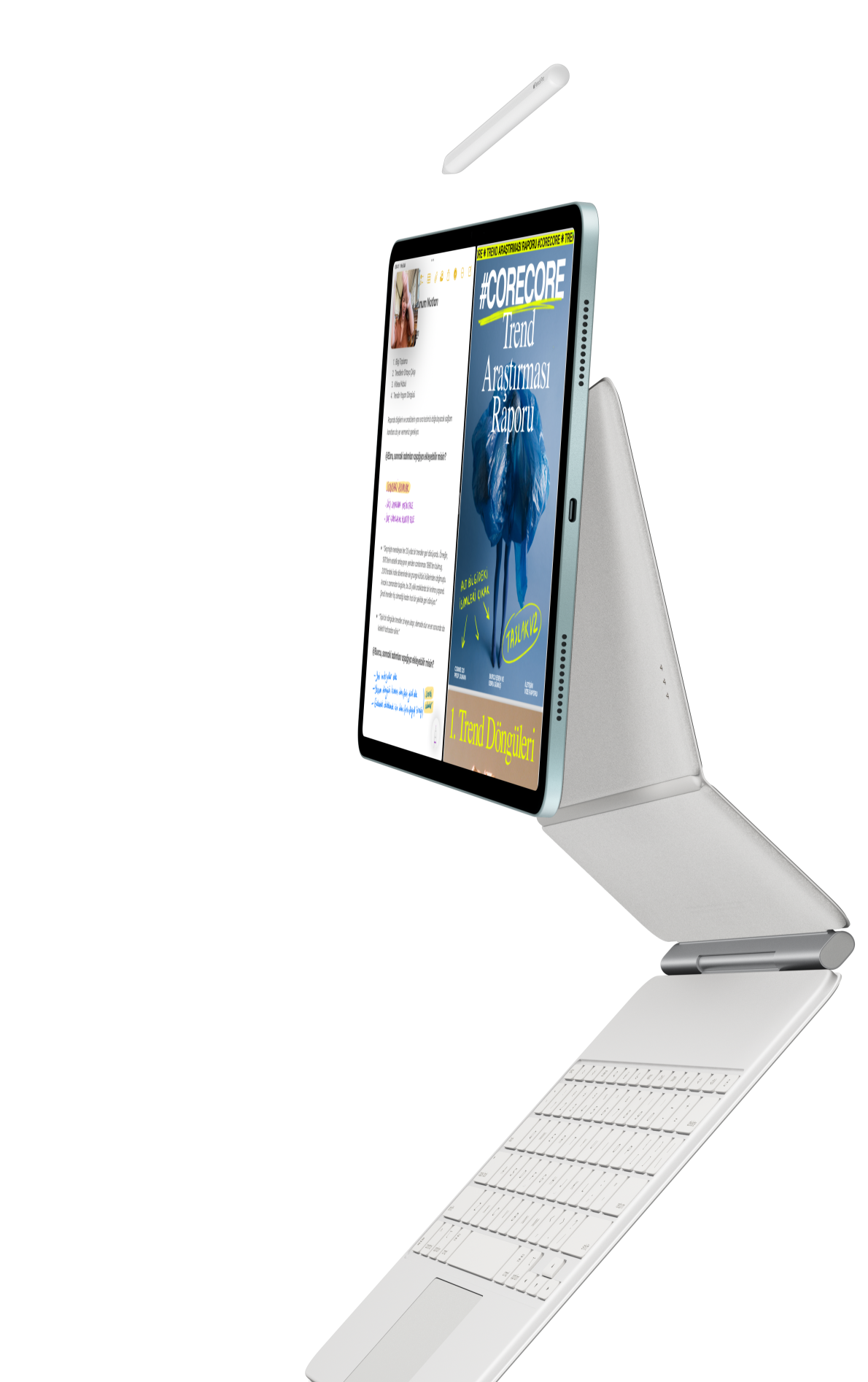 Apple Pencil çizim ve resim yapmanın, elle yazmanın ve not almanın nasıl bir deneyim olması gerektiğiyle ilgili standartları belirliyor. Kullanıcı dostu, hassas ve sihirli. Ayrıca mükemmel piksel hassasiyeti, düşük gecikme süresi ve eğime duyarlılık gibi üstün özelliklere ve temas seçici teknoloji desteğine sahip. Ve Apple Pencil Pro, yaratıcı fikirlerinizi hayata geçirmeniz için eşi benzeri olmayan yetenekler sunuyor.3