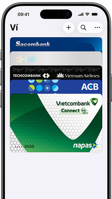 Ứng dụng Ví hoạt động ngay trên iPhone của bạn. Đây là nơi lưu trữ an toàn cho thẻ tín dụng, thẻ ghi nợ hoặc thẻ nội địa, thẻ giao thông công cộng, vé máy bay, vé sự kiện, chìa khóa xe hơi và hơn thế nữa, tất cả ở cùng một nơi. Và tất cả đều tương thích với iPhone hoặc Apple Watch, nhờ vậy mà bạn có thể mang ít đồ hơn nhưng lại làm được nhiều việc hơn.